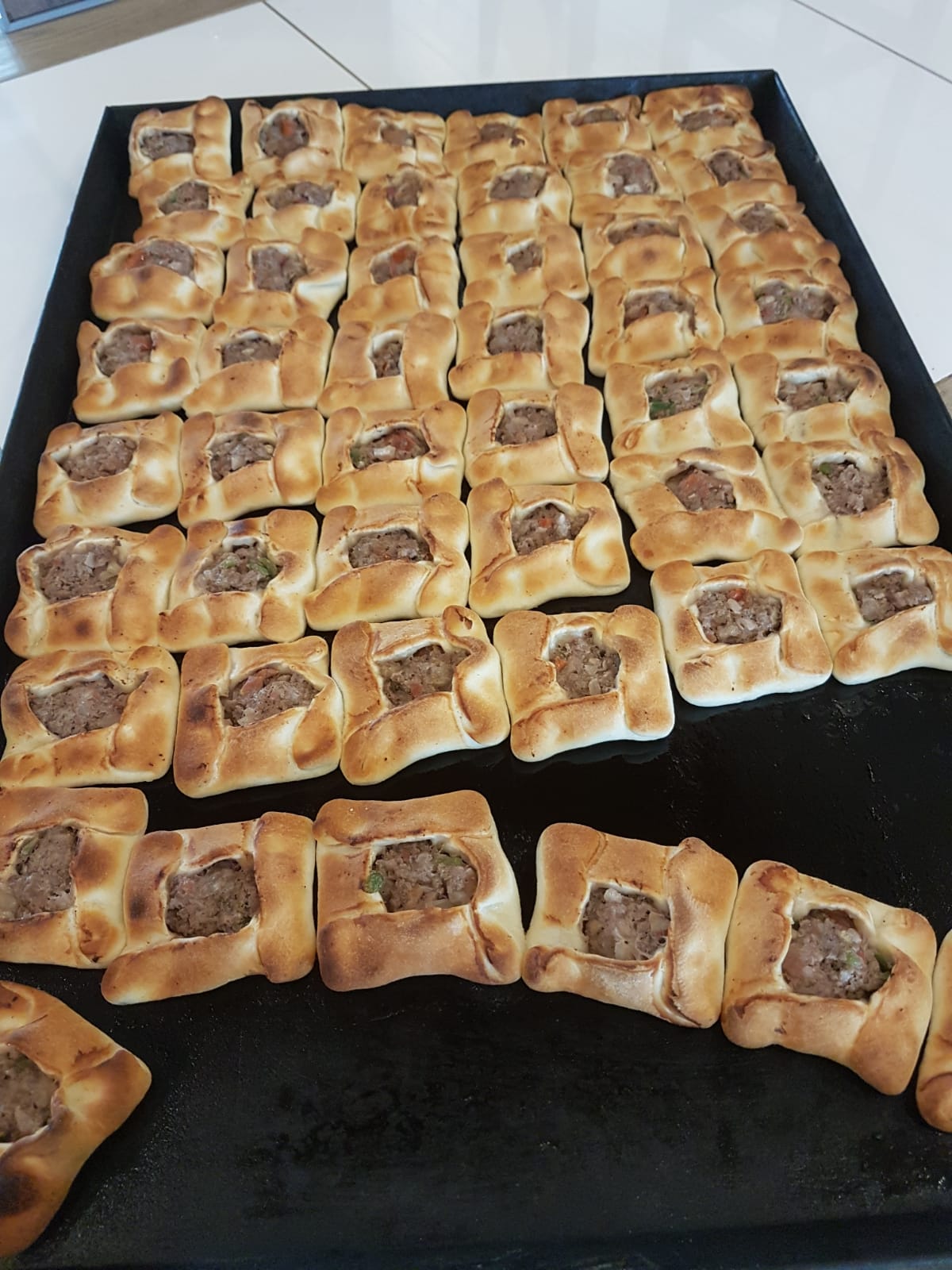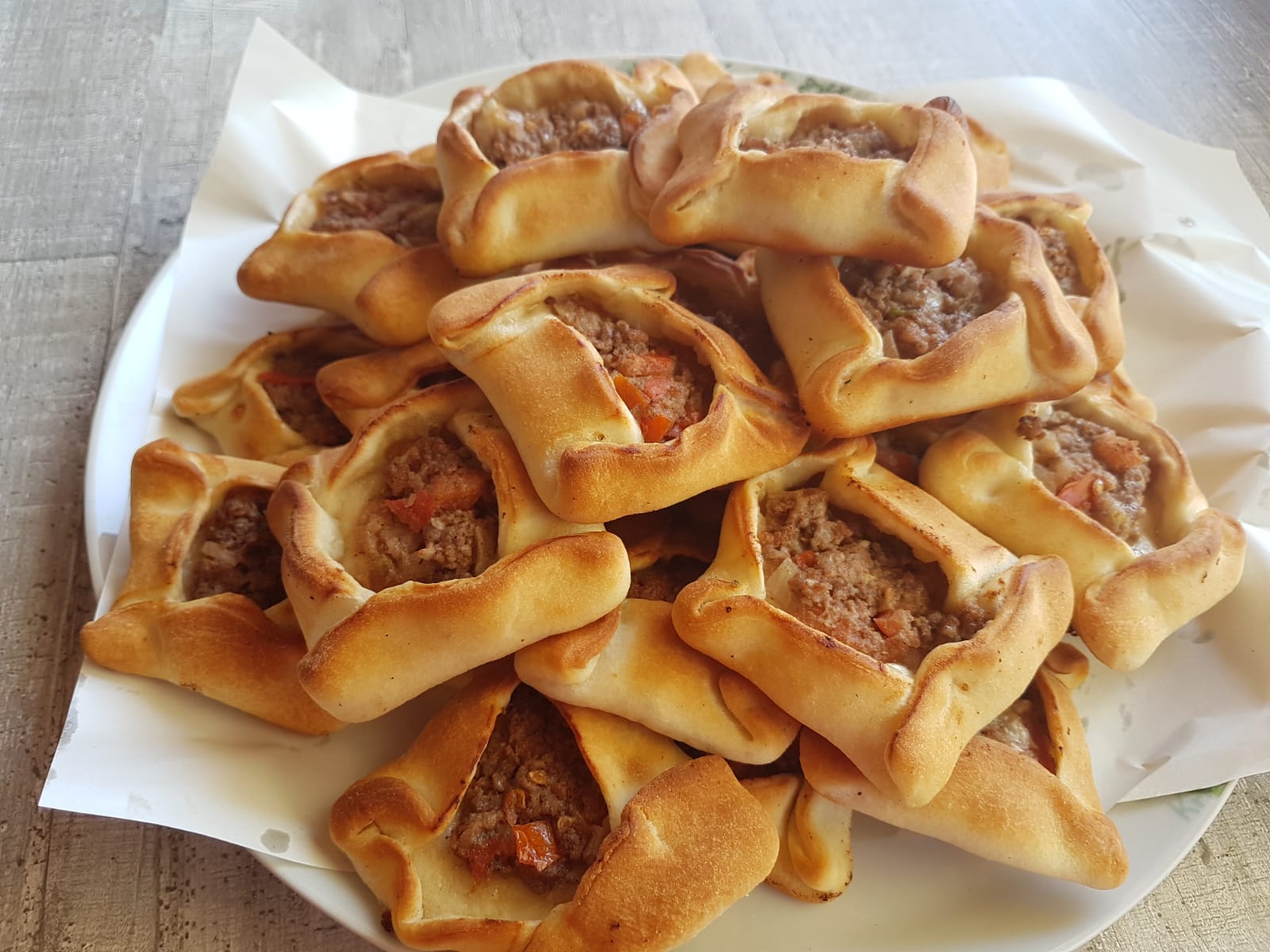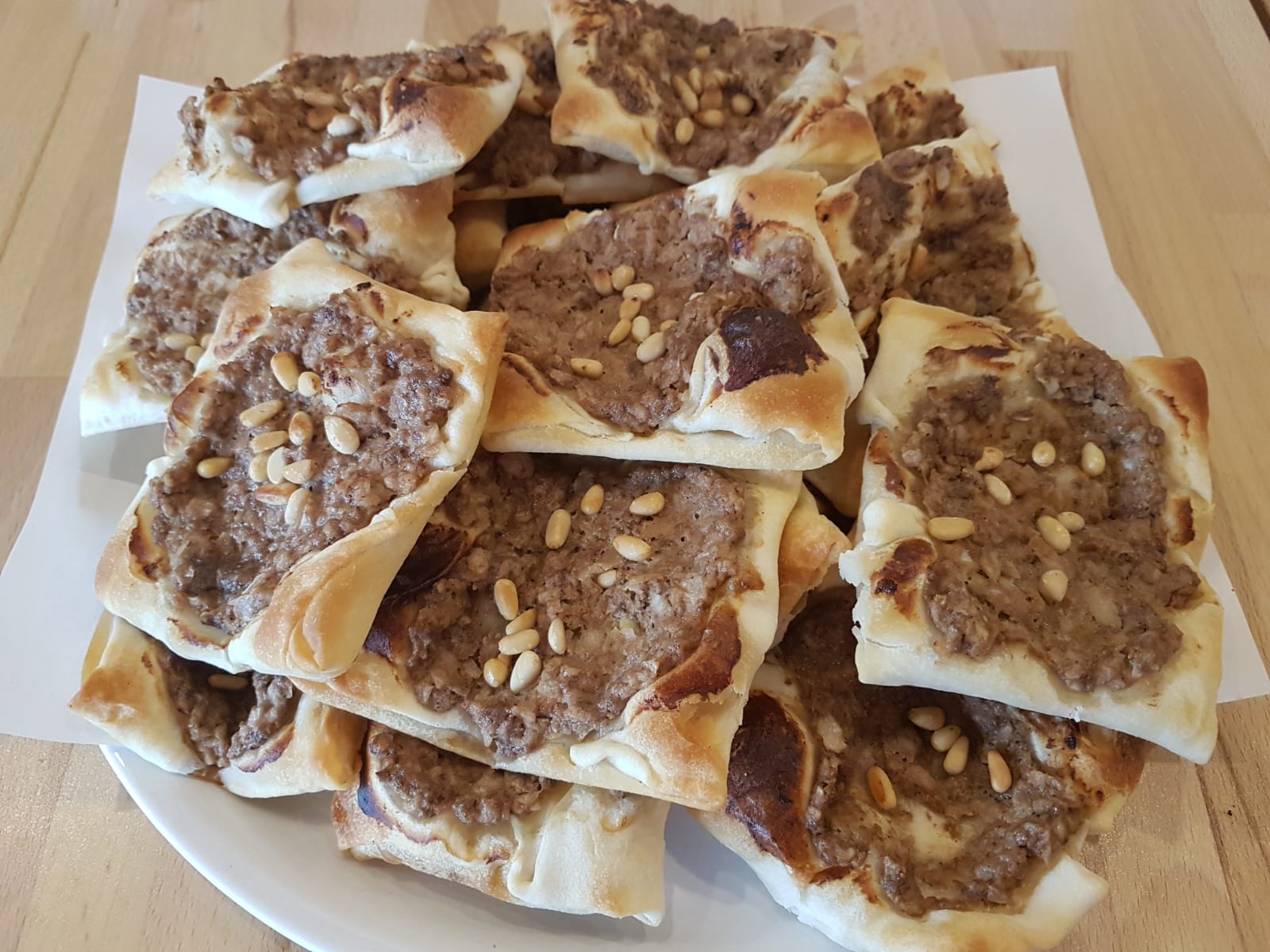 Herzhafte libanesische Fladenbrote, Manakish mit Käse, Thymian oder Hackfleisch