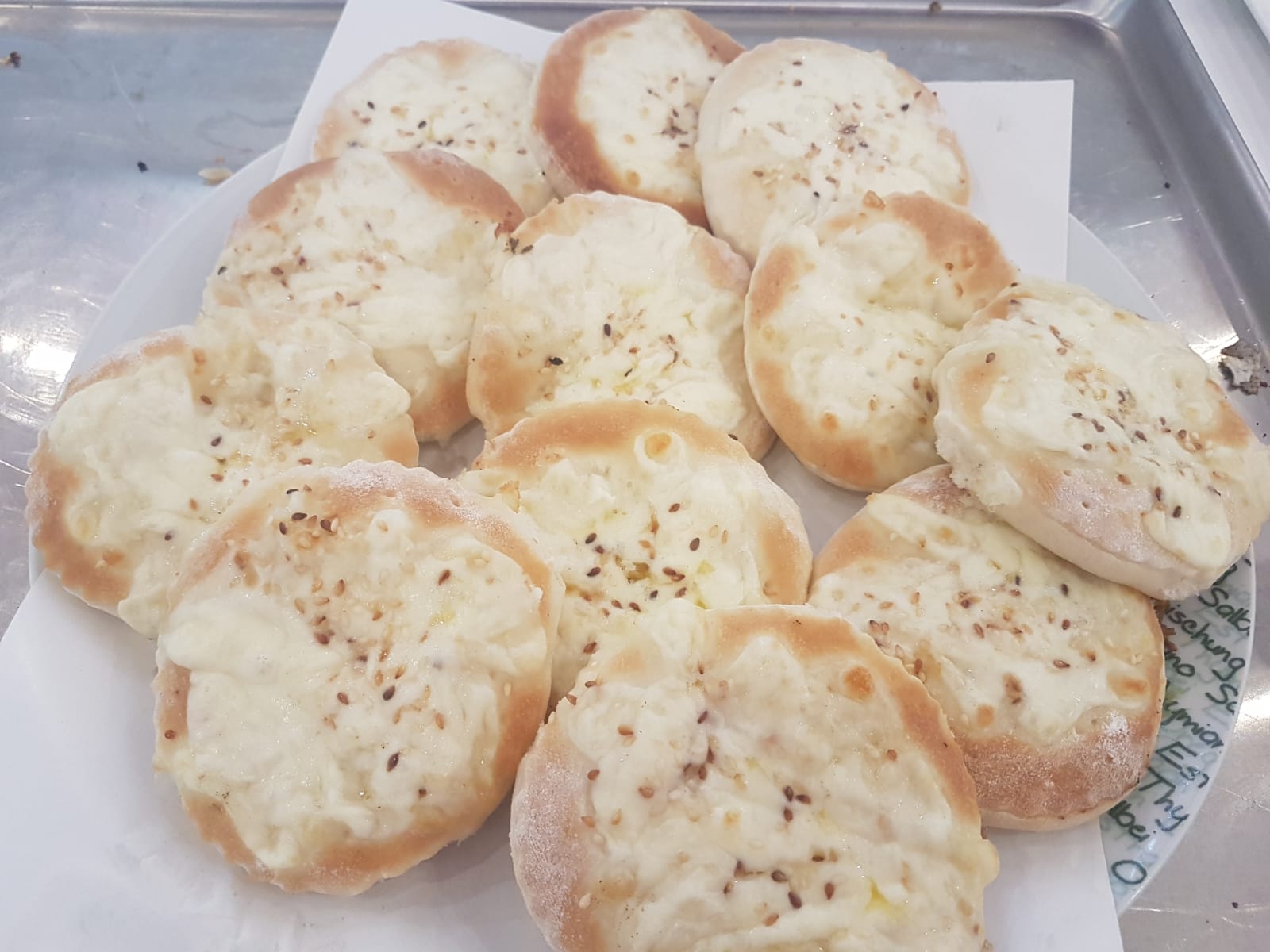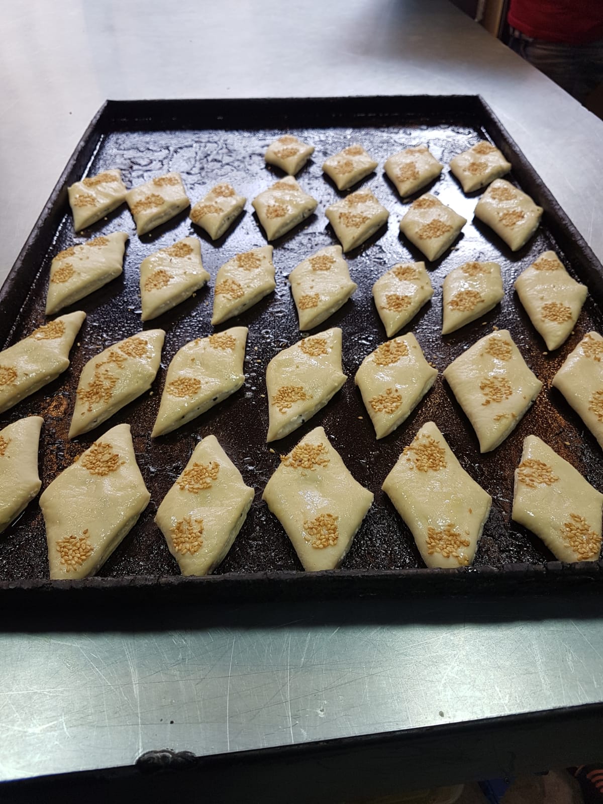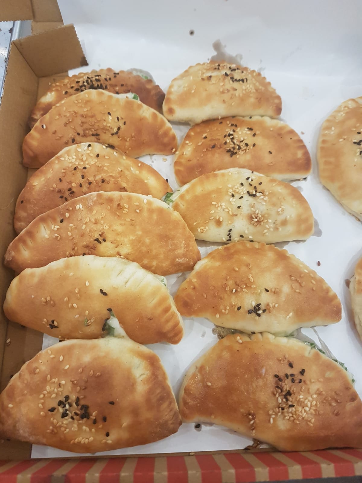 Herzhafte libanesische Fladenbrote, Manakish mit Käse, Thymian oder Hackfleisch